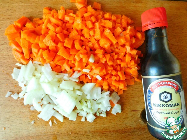 Для этого морковь чистим и нарезаем мелким кубиком, луковицу также очистим и мелко нарезаем. -