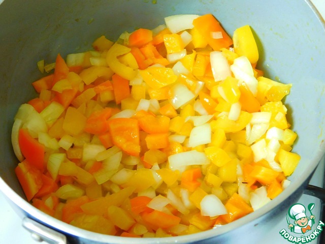 Пока основа для начинки остывает, приготовим соус из сладкого перца.