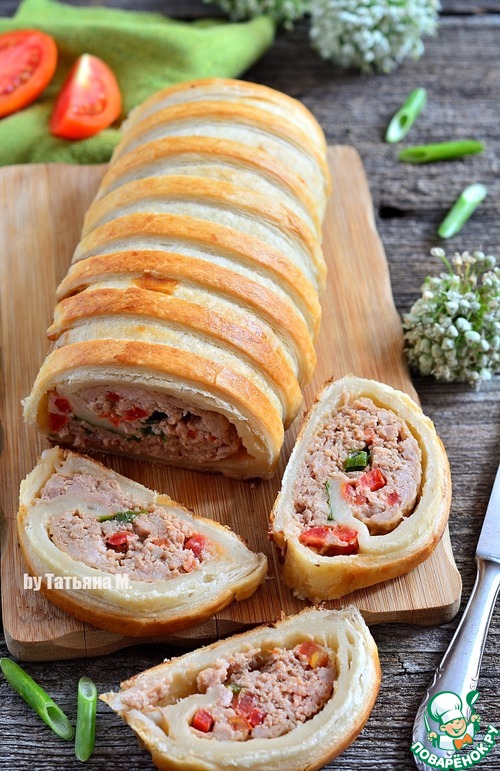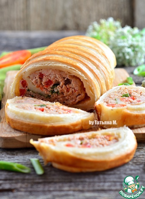 Если нужно быстро приготовить сытную и вкусную мясную закуску для гостей, то пригодится этот мой рецепт! Ароматный и красивый рулет из слоеного теста, с начинкой из свиного фарша, приправленного соевым соусом, чесноком и помидором! Очень вкусно, сочно и не хлопотно!