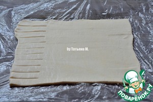 С одной стороны прямоугольника ножом сделать надрезы, длиной примерно 5 см. -