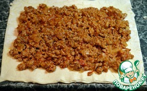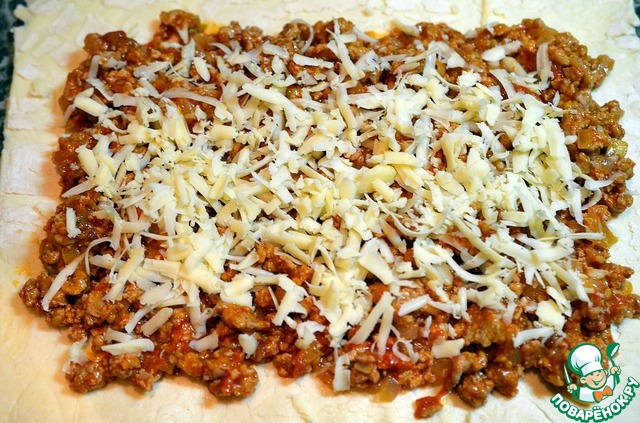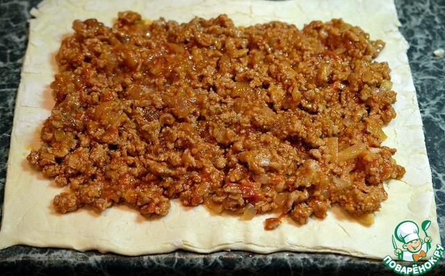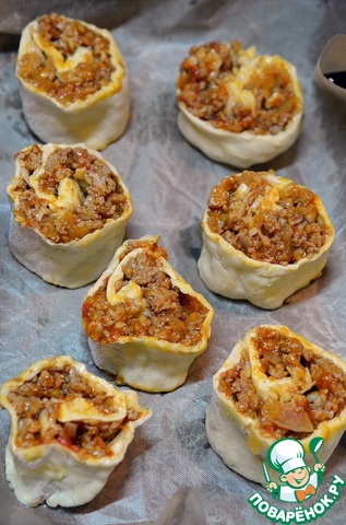 Нежное хрустящее слоеное тесто, начинка из ароматного сыра и соуса на основе мясного фарша. Это блюдо особенно любимо детьми, так как чем-то напоминает пиццу. Но под видом этой мини-пиццы с успехом будет съедено и так нелюбимое многими мясо. Очень вкусно, сытно и полезно.