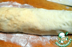 Аккуратно сверните каждый пласт рулетом. Защипните шов и положите рулет швом вниз.