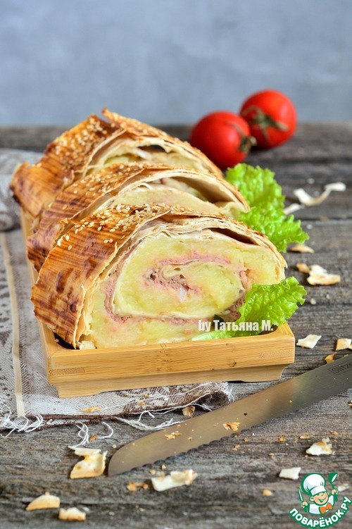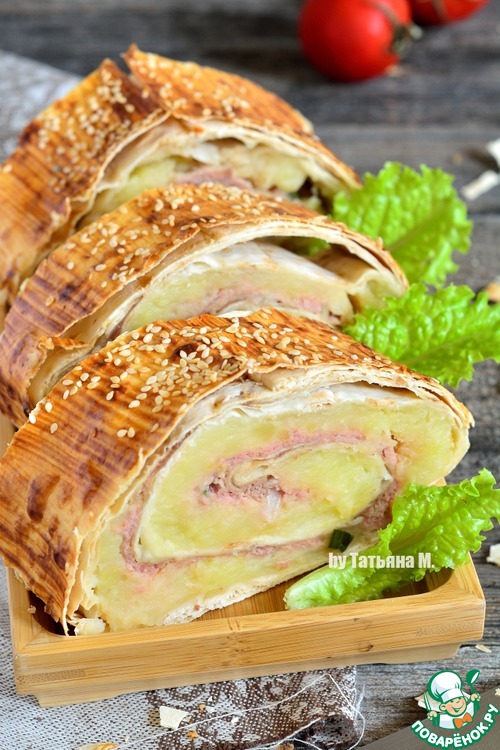 Большой и сытный картофельный рулет с куриным мясом в хрустящем лаваше! Полноценный обед или ужин, для взрослых и детей! Очень ароматно и вкусно!
