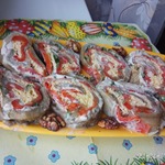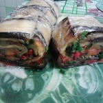 Рулет из баклажанов и запеченного перца