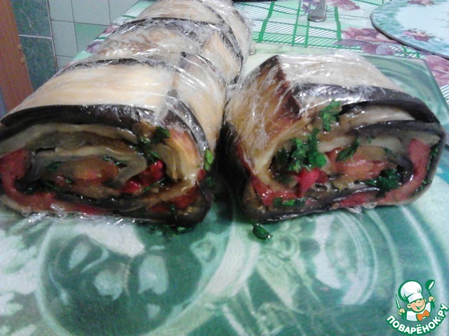 Рецепт «Рулет из баклажанов и запеченного перца»:
