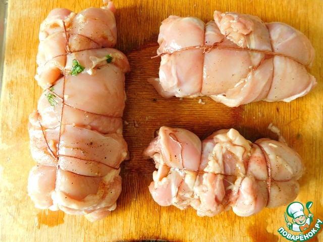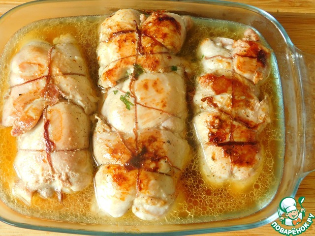 Рецепт «Рулеты из куриного филе с ветчиной»: