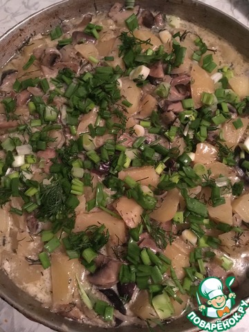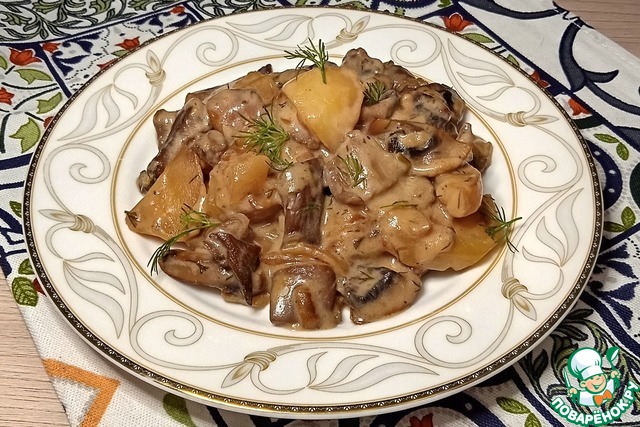 Вкусное, шелковистое жаркое. Если вы стали счастливым обладателем грибного лукошка, обязательно опробуйте рецепт!