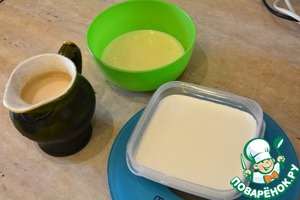Здесь все просто берем по 150 мл. сгущенного и топленого молока, сливки и перемешиваем.
