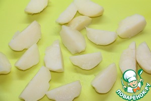 Картофель, заранее сваренный, очищенный порезать ломтиками