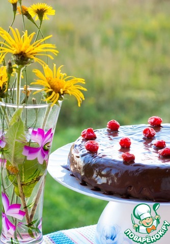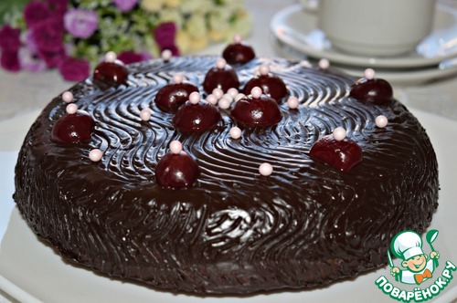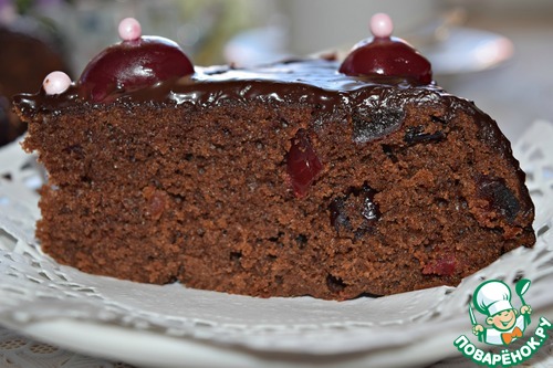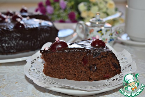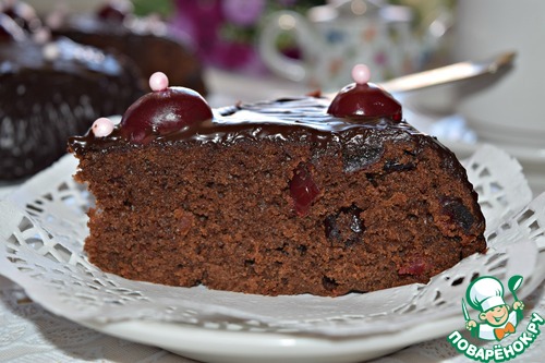 Вишни не было,добавила больше клюквы,вместо глазури горький шоколад.В следующий раз сделаю всё точно по рецепту.Замечательный пирог!