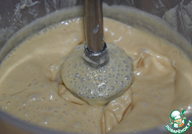 Кофе развести в столовой ложке воды и добавить в яично-масляную смесь.