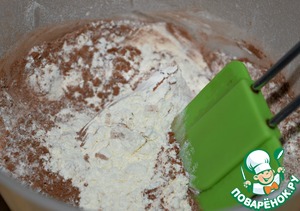 Просеять муку, какао и разрыхлитель в отдельную миску, перемешать.