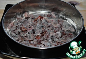 Чтобы ягоды не упали на дно формы в пpоцессе выпечки, обвалять их в муке (обычно я это делаю в сите-тогда лишней муки не остается, очень удобно)