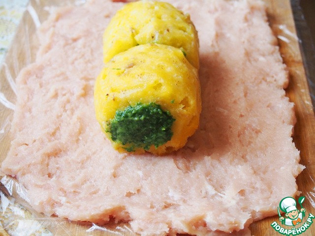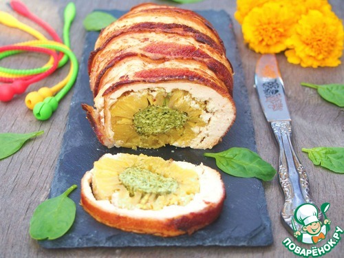 Рецепт «Куриный рулет с ананасом и шпинатом»: