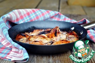 Берем сковороду с толстым дном и хорошенько ее разогреваем. Курицу вымыть, обсушить и выложить на горячую сковороду.