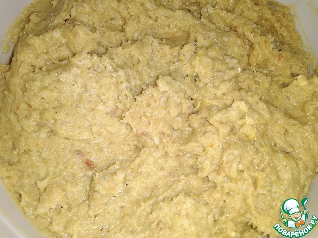 • Хлеб залить молоком или водой. Картофель и лук почистить. Рыбу нарезать на куски. Рыбу, картофель, масло, лук и хлеб перемолоть на мясорубке с мелкой решеткой раза 2-3. Добавить приправу для курицы, соль и перец по вкусу, и хорошо перемешать. Можно добавить измельченные зеленый лук и зелень. Я не добавила т. к. у меня их не оказалось.