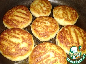 • Влажными руками сформировать котлетки и жарить на небольшом огне с одной стороны без крышки. Перевернув, накрыть крышкой и обжарить до готовности.