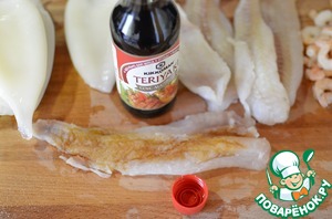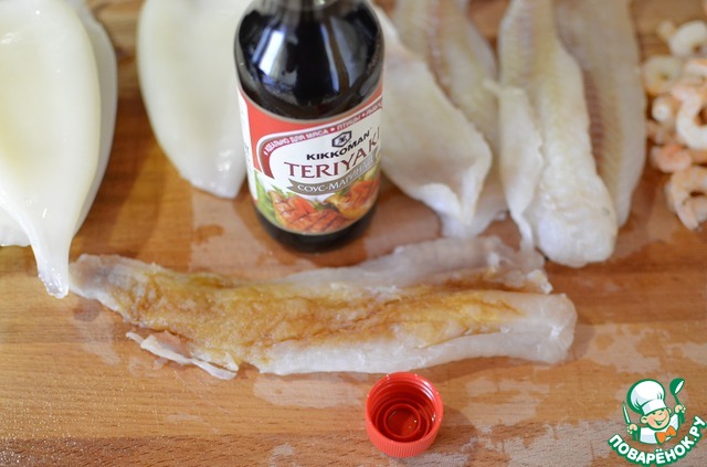 Рыбное филе полить 0.5 столовой ложкой соуса терияки.