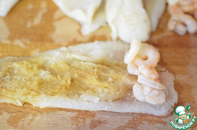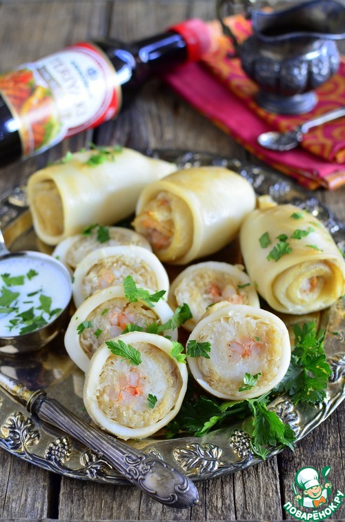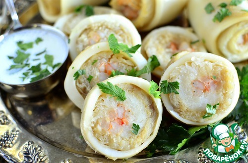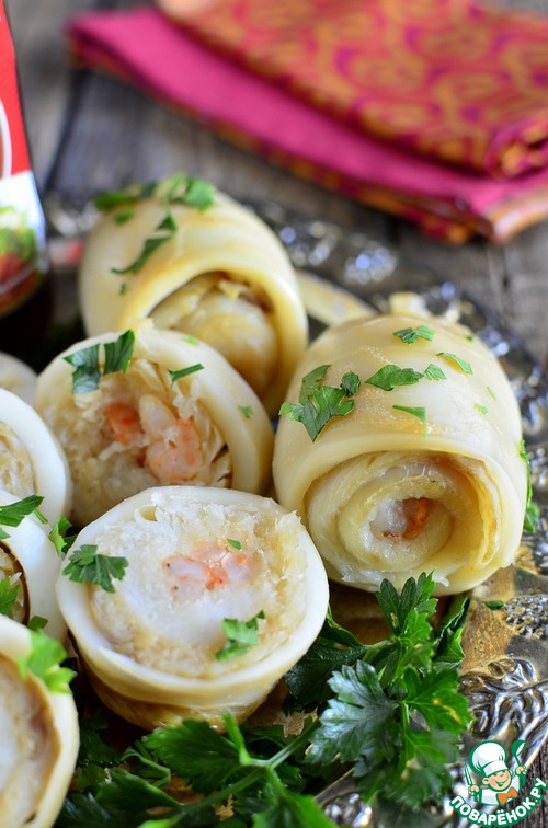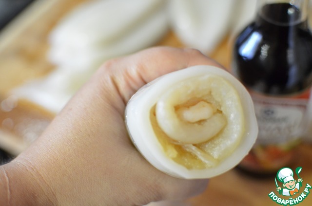 Рецепт «Рыбные рулеты в кальмарах»: