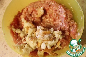 В конце добавить хлеб, размоченный в воде и раскрошенный руками.