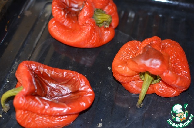 Перец запечь (30 минут в духовом шкафу на 180 градусах).