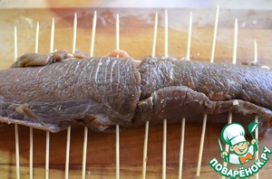 - Говядина (у меня два подходящих кусочка под рулет) — 400 г