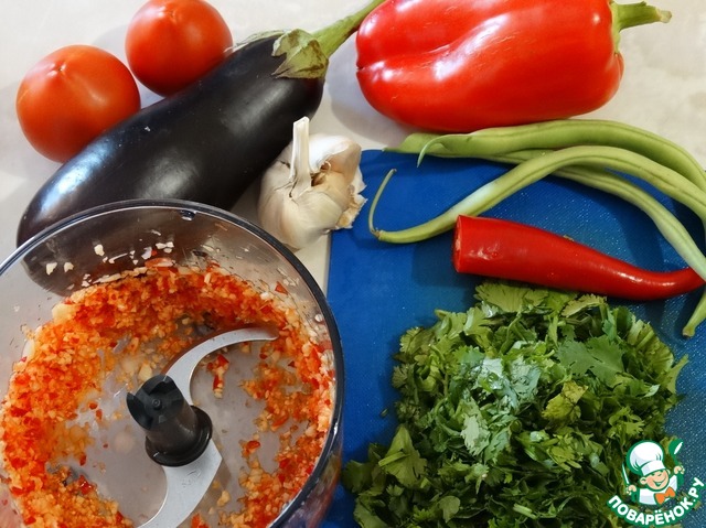 Очищенный чеснок и горький перец измельчить удобным способом, я измельчаю в блендере. Кинзу перебрать, помыть и нарезать. Если не любите кинзу, можете заменить ее на петрушку.