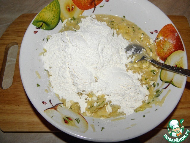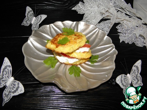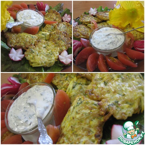 Рецепт «Оладьи из кабачков со сметанным соусом»: