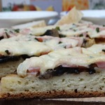Распределить по поверхности "пиццы" начинку. У меня копченая колбаска и помидоры. |