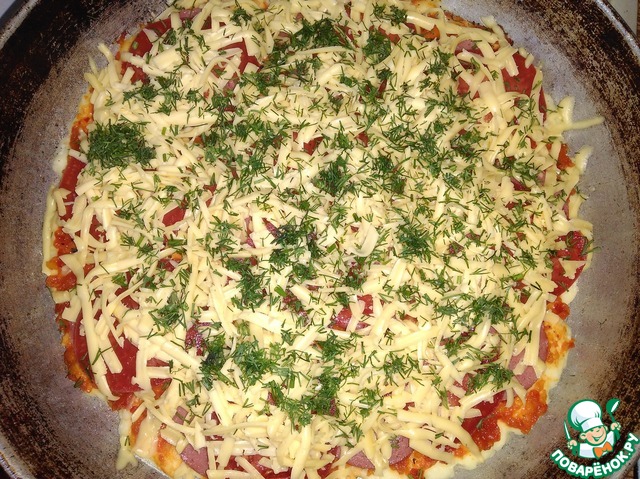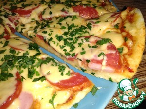 Описание: Быстрая и вкусная "пицца" на творожном тесте. Очень выручит тех, у кого нет духовки.