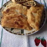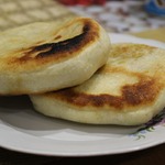 Раскатать слегка скалкой лепешку с одной стороны, затем с другой. Тесто не рвется, как бы играет, слегка вздувается при раскатке. Так подготовить все лепешки, накрыть полотенцем, оставить на 10 минут.