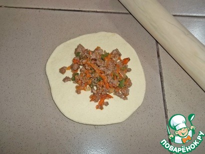 Выложить на тесто около 2ст. л. начинки (в зависимости от размера лепешки),