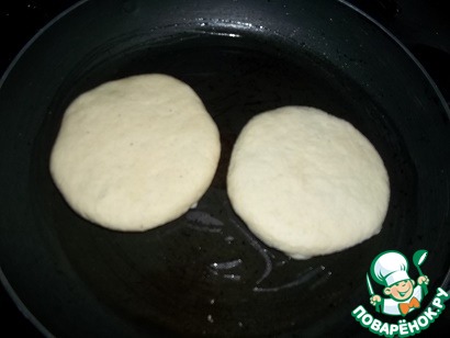 В сковороде разогреть немного раст. масла, выложить лепешки, жарить на самом маленьком огне под крышкой, до румяной корочки (примерно по 2 минуты с каждой стороны).