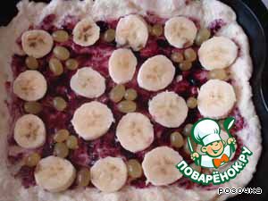 Сырники и запеканки надоели. Хотелось что-нибудь новое. А в холодильнике пропадал черничный йогурт, кусок банана. Короче говоря, собрала я все что можно и получилась сладкая пицца. Дети были в восторге. Не судите строго. Это мой первый экспромт.