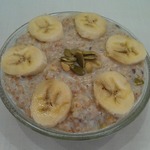 Очень легкая в приготовлении каша. Это великолепное сочетание банана с семечками.