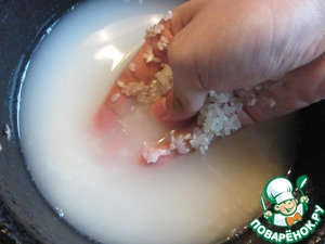 Вымываем рис. Затем высыпаем рис в кастрюли и заливаем водой в соотношении 1:7. Варим 40мин. на медленом огне.