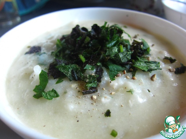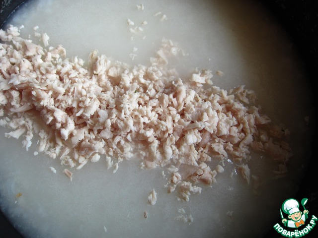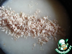 Добавляем 5 ст. л. рисовой каши в миску и хорошенько перемешиваем.