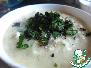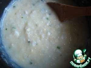 Вливаем смесь в кастрюлю каши. Хорошо перемешиваем.