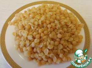Пока тушится мясо, варим горох. горох нужен такой, который не разваривается. Горох моем, заливаем водой, ставим на огонь, варим до готовности, немного посолить.