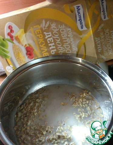 • На молоке варим овсяную кашку с овсяных хлопьев, сахар не добавляем