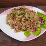 В гречневую кашу с картофелем кладется лук, если все-таки выбор будет сделан в его пользу, и сливочное масло, после чего все перемешивается и подаётся.