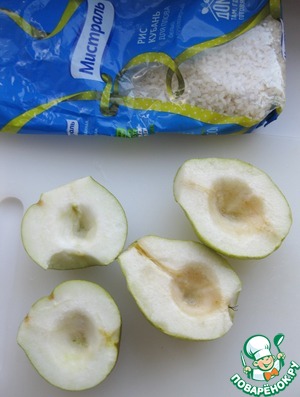 Пока каша варится, займемся грушами. Груши разделить на 2 части, достать сердцевину.