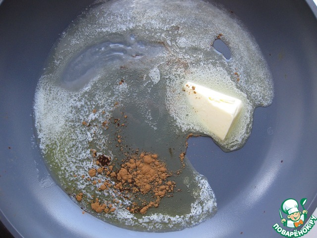 На сковороде растопить сливочное масло и мед, добавить немного корицы, тщательно перемешать.