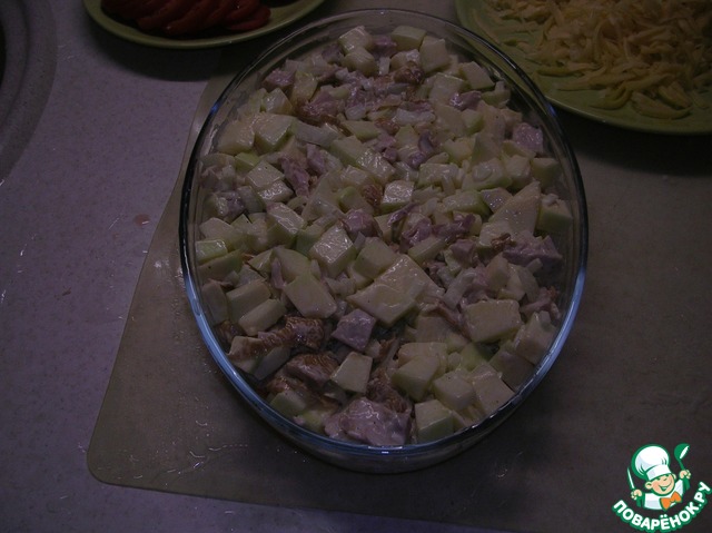 Рецепт «Запеканка из кабачков с копченой курицей»: