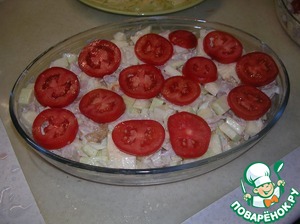 Кабачок, лук, курицу нарезать кубиками. Морковь и сыр натереть на крупной терке. Помидоры нарезать кружочками.