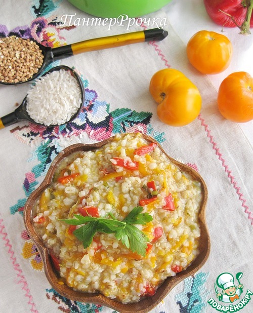 В одном интервью Эдита Станиславовна поделилась рецептом, я бы сказала идеей, приготовления вкусного, диетического гарнира, который помогает сохранять фигуру и красоту. Тут 2 важных условия: брать надо несколько видов круп и несколько видов овощей. А уж какой простор для фантазии... Предлагаю Вам вариант гарнира, который, на мой взгляд, получается идеальным.