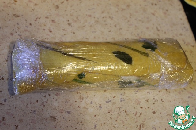 • Готовый рулет завернуть в пищевую пленку и убрать в холодильник на пару часов, а лучше на ночь. Приятного аппетита!