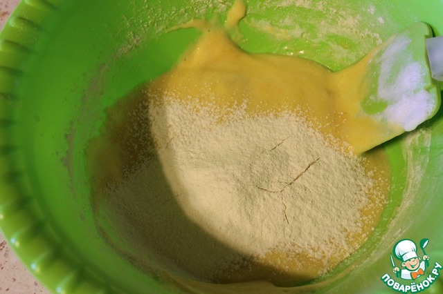• Чередуя, добавить взбитые белки (1 ст. л.)