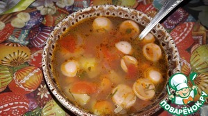 Супчик получился ярким, с насыщенным томатным вкусом и приятной остринкой.