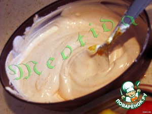 Приготовим соус: смешиваем сметанку, кетчуп и карри в однородную кремообразную массу, затем можно посолить и поперчить по вкусу.